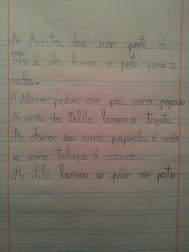 Quanto a erros, bom, com a ajuda da mamã conseguiu ter "zero", digamos que a palavra "pediu" baralhou-o um pouco e os assentos nos "a" também não estão bem, mas isso só reparei depois....shame on me!!!!!